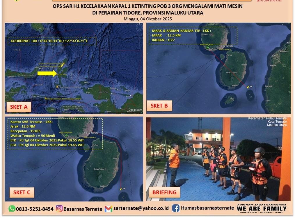 TIDORE- Sebuah perahu katinting dengan Penumpang atau POB 3 orang mengalami mati mesin di perairan ...