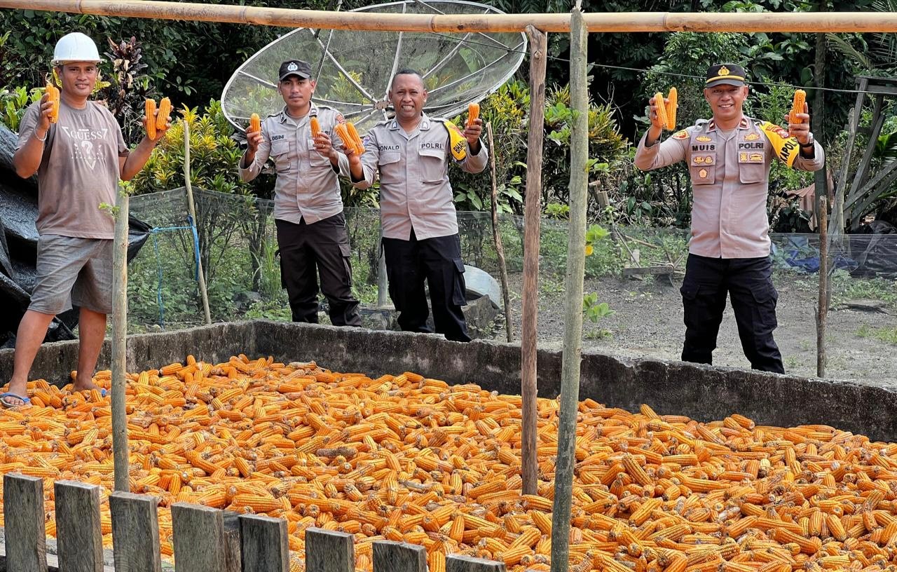 Kegiatan yang dipimpin langsung oleh Kapolsek Ibu, Ipda Muis Ode Amran, S.H., bersama para Bhabinkamtibmas dan personel Polsek Ibu ini berlangsung di lahan jagung milik kelompok tani Pomakariwo.